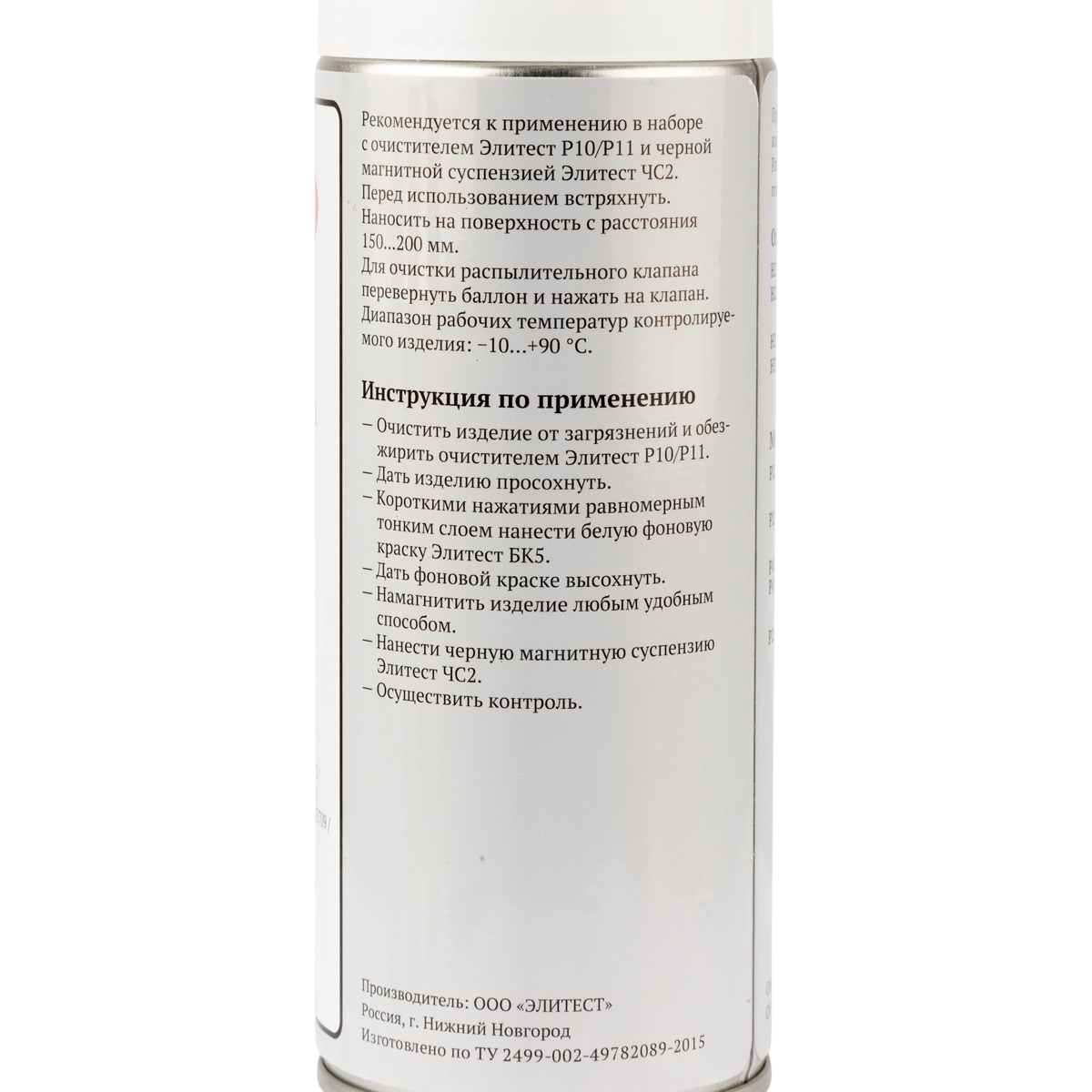 Белую грунтовочную краску Элитест БК5 рекомендуется использовать совместно с очистителем Элитест Р11 (или Элитест Р10), а также магнитной суспензией Элитест ЧС2 черного цвета.