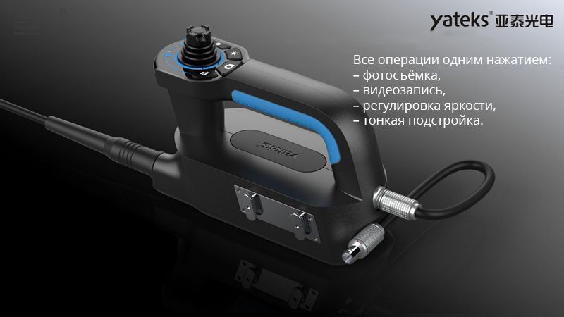 - Эргономичное управление — электромагнитная система поворота обеспечивает гибкое вращение и изгиб зонда на 360° с максимальным углом до 180° в одну сторону.