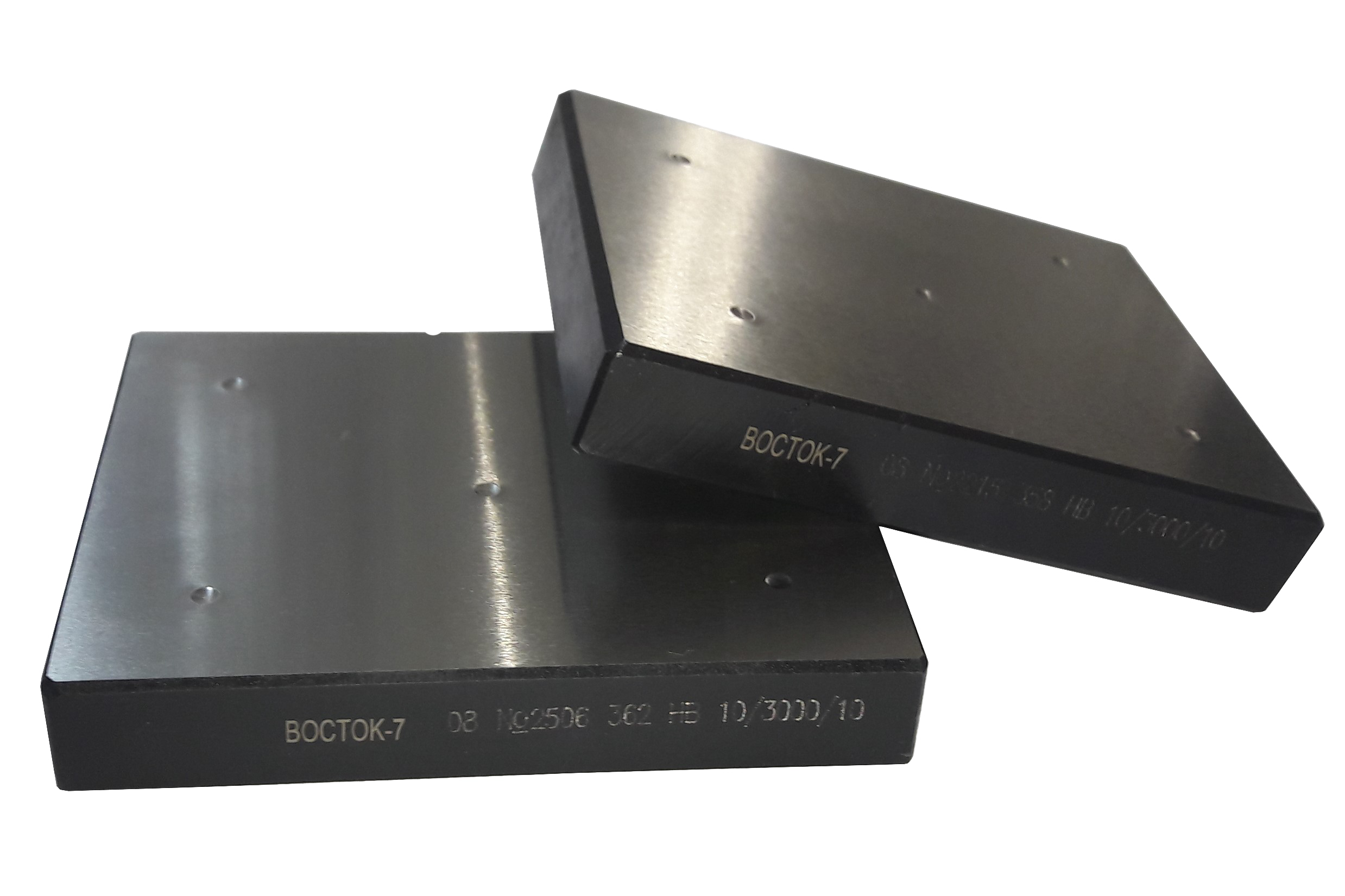 Изделия представляют собой прямоугольные плитки с одной рабочей стороной, предназначенные для поверки твердомеров по Бринеллю.