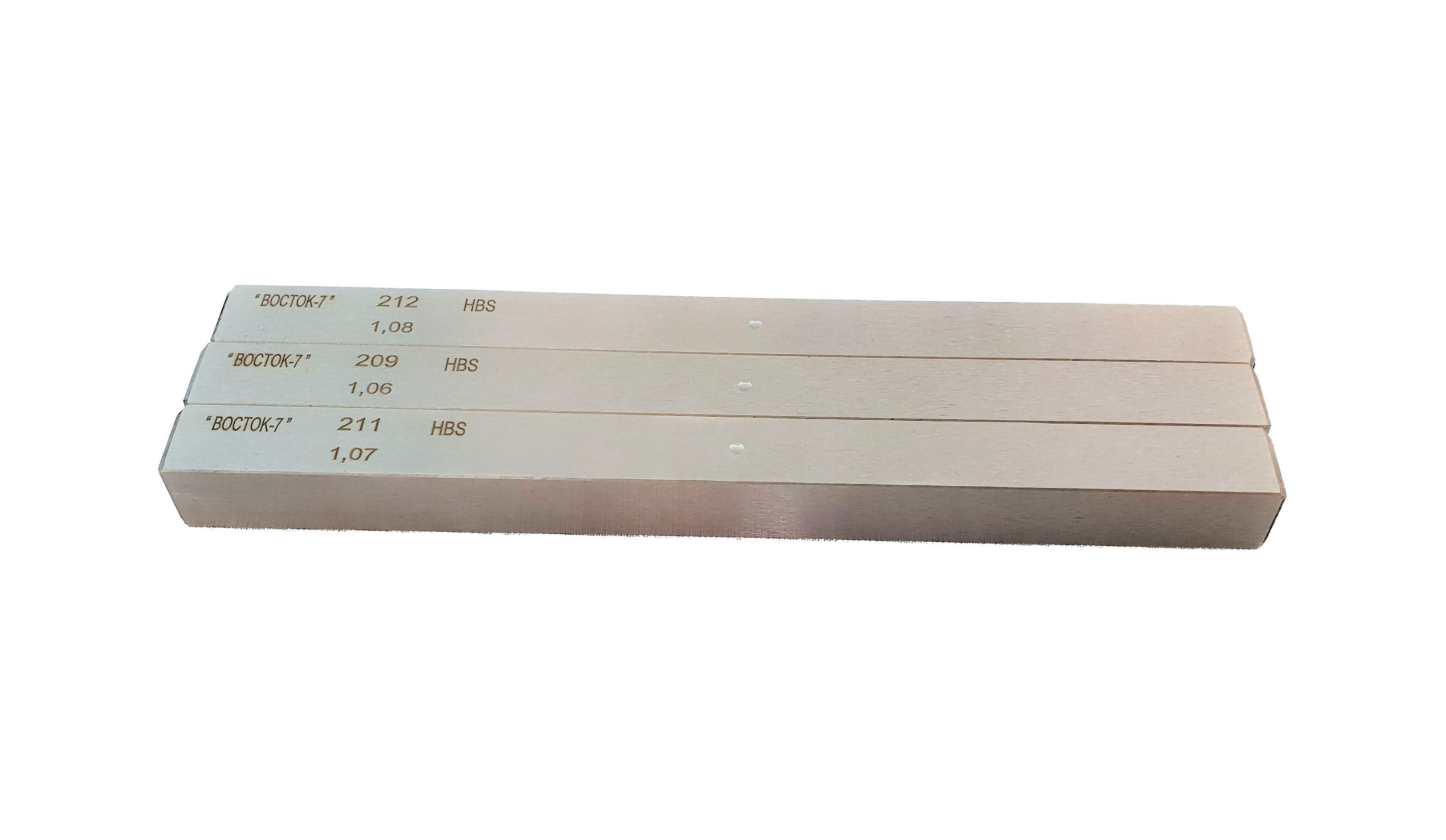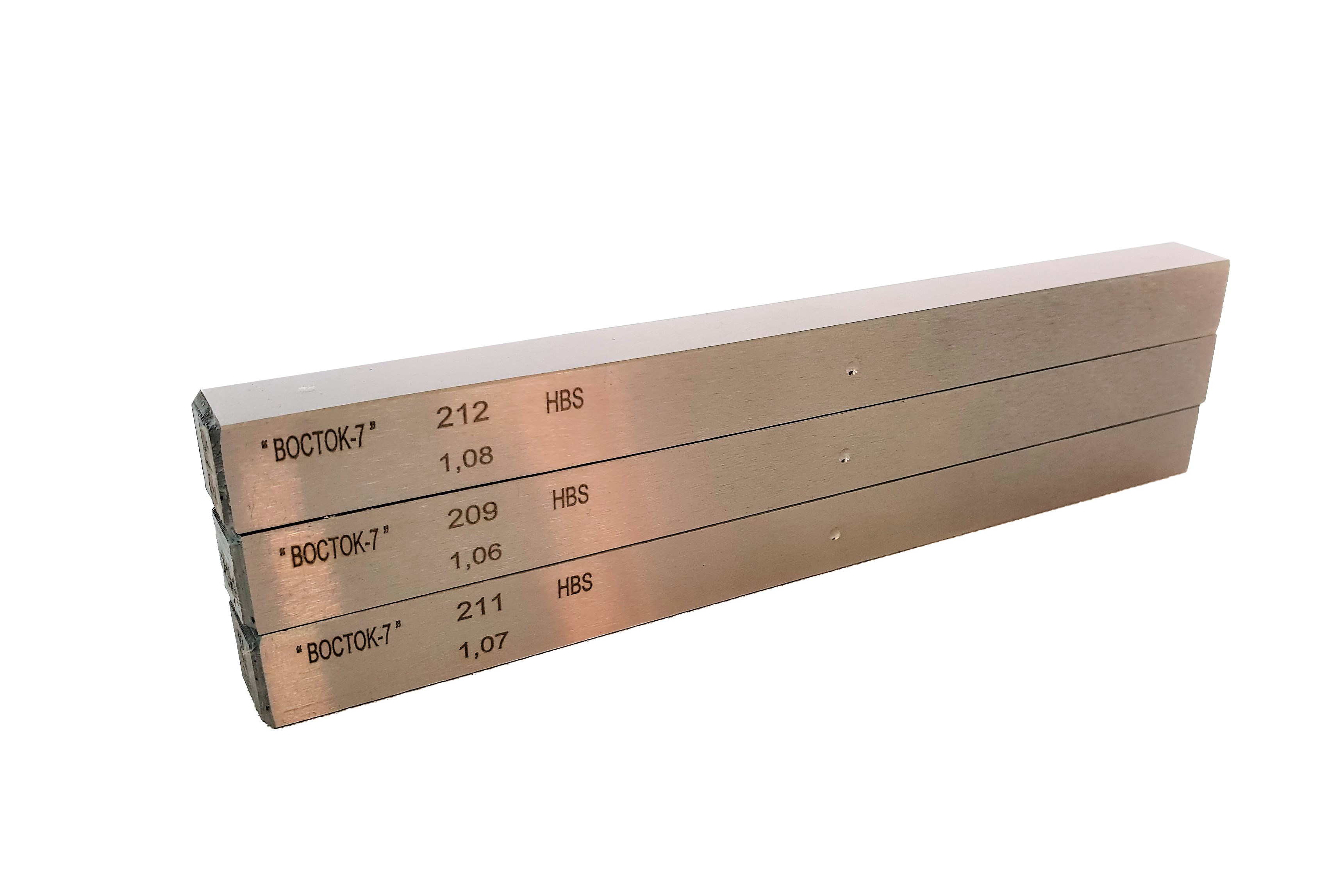 Обе рабочие стороны эталона имеют 1-2 отпечатка, которые образуются в ходе первичной калибровки меры после выхода с производственной линии. Для калибровки используется стальной шариковый наконечник диаметром 10 мм при нагрузке 750 кгс.