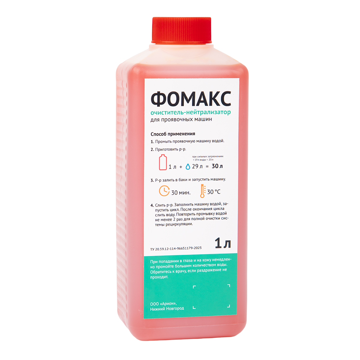 В интернет-магазине КИТЕСТ вы можете купить однокомпонентный очиститель-нейтрализатор ФОМАКС. Средство используется для обслуживания автоматических проявочных машин и устройств ручной обработки рентгеновских пленок.