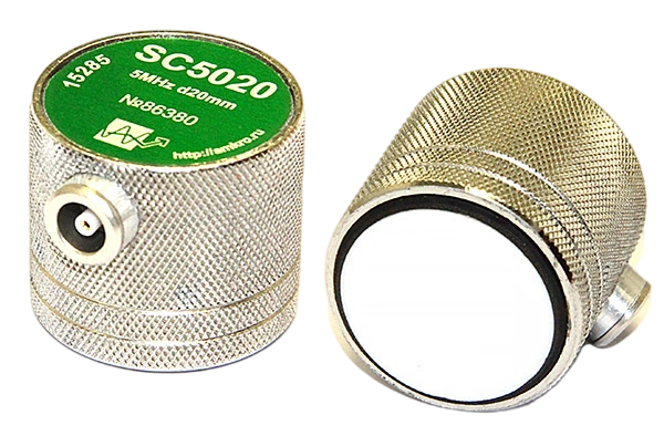 SC5020 - это контактный совмещенный ультразвуковой преобразователь с керамической защитной поверхностью. Его номинальная частота составляет 5 МГц, а диаметр пьезоэлемента - 20 мм. Этот преобразователь совместим со всеми видами отечественных и зарубежных ультразвуковых дефектоскопов.